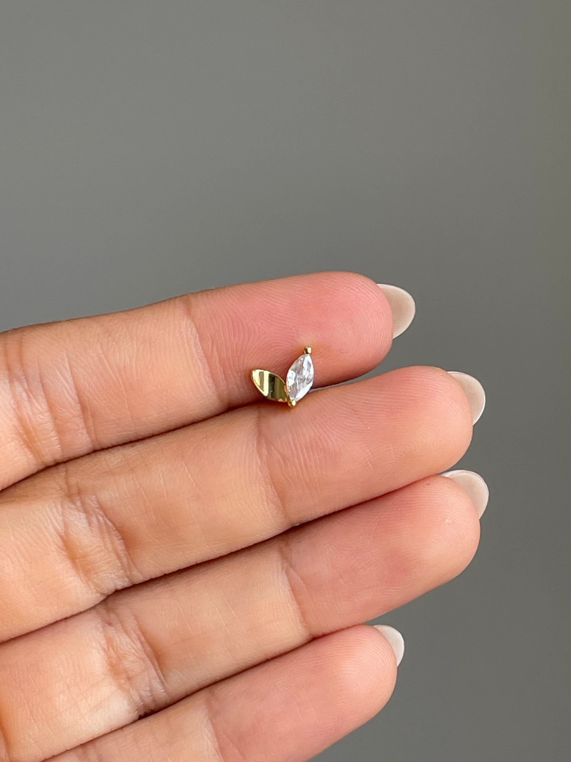 Léger comme une plume, le piercing "Néora" combine une pierre marquise étincelante et une petite aile dorée pour un look élégant et poétique. Parfait pour les amateurs de bijoux discrets et uniques, il s'adapte aussi bien au lobe qu'au cartilage.